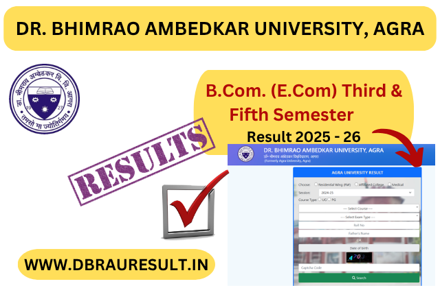 Dr. Bhimrao Ambedkar University, Agra (DBRAU) has officially released the B.Com. (E.Com) Third & Fifth Semester Result 2026. All students can now check their results.