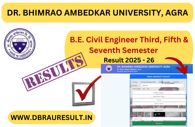 Dr. Bhimrao Ambedkar University, Agra (DBRAU) has officially released the B.E. Civil Engineer Third, Fifth & Seventh Semester Result 2026. All students can now check their results.