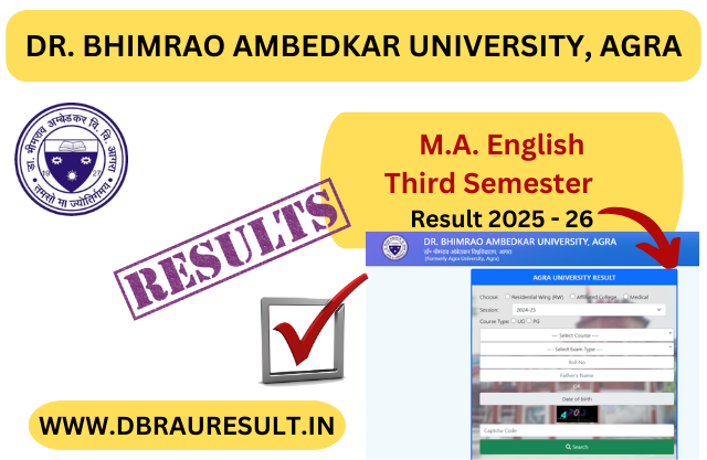 Dr. Bhimrao Ambedkar University, Agra (DBRAU) has officially released the M.A. English Third Semester Result 2026. All students can now check their results.