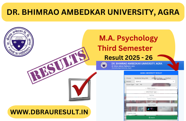 Dr. Bhimrao Ambedkar University, Agra (DBRAU) has officially released the M.A. Psychology Third Semester Result 2026. All students can now check their results.
