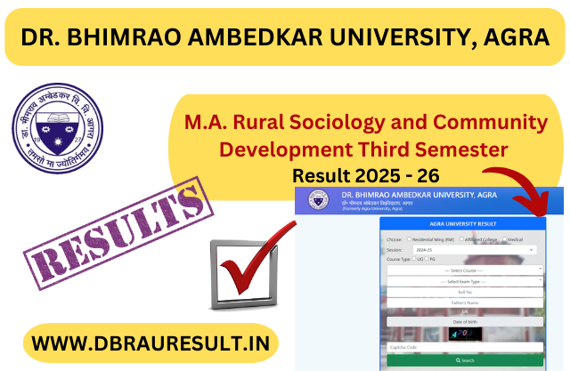 Dr. Bhimrao Ambedkar University, Agra (DBRAU) has officially released the M.A. Rural Sociology and Community Development Third Semester Result 2025. All students can now check their results.