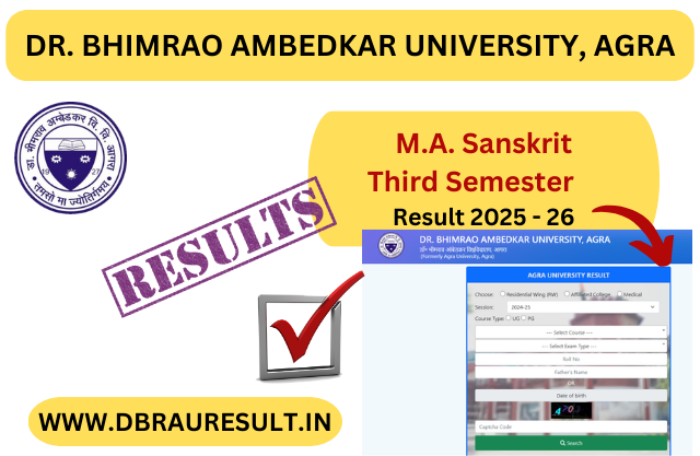Dr. Bhimrao Ambedkar University, Agra (DBRAU) has officially released the M.A. Sanskrit Third Semester Result 2026. All students can now check their results.