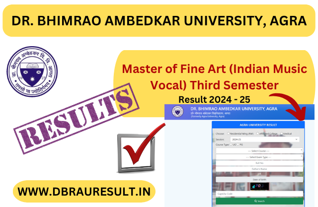 Dr. Bhimrao Ambedkar University, Agra (DBRAU) has officially released the Master of Fine Art (Indian Music Vocal) Third Semester Result 2025 . All students can now check their results.