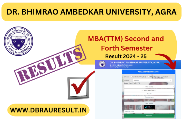 Dr. Bhimrao Ambedkar University, Agra (DBRAU) has officially released the MBA(TTM) Second and Forth Semester Result 2025 . All students can now check their results.